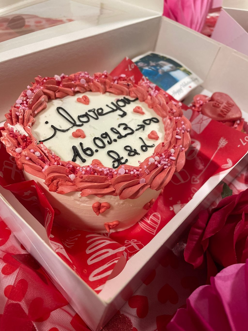 - un bento cake délicatement décoré avec la date de votre rencontre💘ainsi que vos initiales